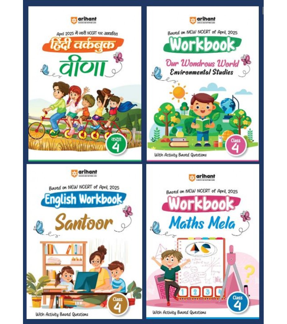 Arihant NCERT Workbook Class 4 Santoor, Veena, Math Mela ,Our Wondrous World set of 4 books As per NEP 2020 series as the name suggests has been designed by Arihant with an aim of helping students practice the concepts using hundreds of practice questions of all types which have been or may be asked in the upcoming CBSE Examinations
