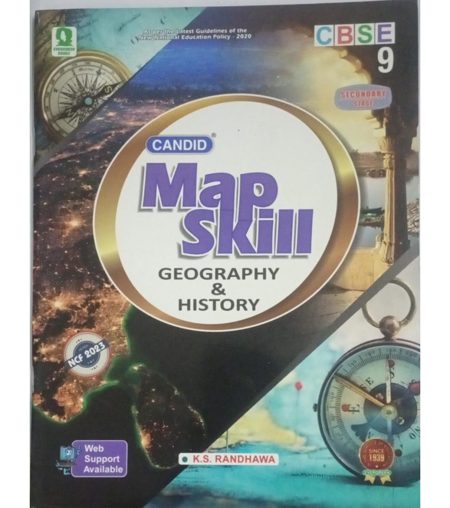 Evergreen Publication Candid CBSE Map Skill (Geography and History) for Class 9, authored by K. S. Randhawa, is a specialized workbook published by Evergreen Publications designed to help students master map work in accordance with the latest CBSE curriculum