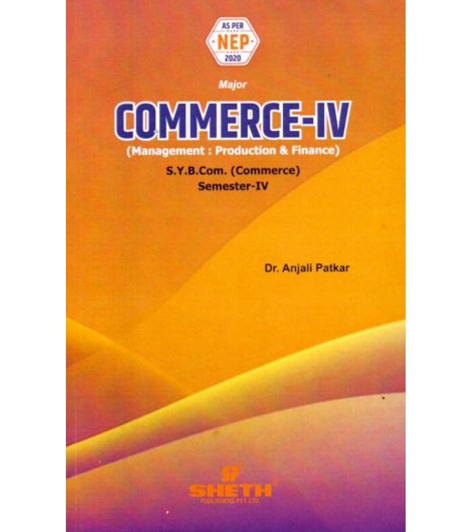 Commerce-IV book is base on latest updated syllabus and paper pattern prescribed by Mumbai University for BCom(Bachelor of Commerce) 2nd Year semester 4 published by Sheth Publication.The knowledge gained through the study of this subject will be useful to the students of all through their in Accounting & Finance professional lives.