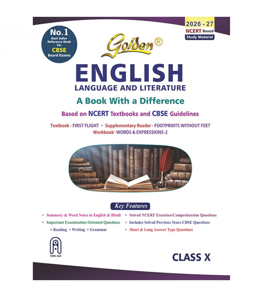 Golden English Language and Literature Study Material for Class 10 is a highly popular and comprehensive reference book for CBSE students. The 2026-27 Edition is meticulously updated to align with the latest NCERT textbooks (First Flight and Footprints Without Feet) and the evolving CBSE 2027 examination pattern.