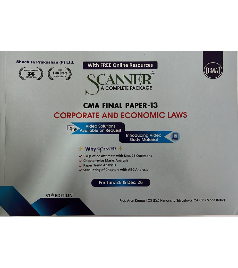 The Shuchita Prakashan Solved Scanner for CMA Final Paper-13: Corporate and Economic Laws (Syllabus 2022) is a vital tool for aspirants focusing on the Group III exams.. (Applicable for Jan 2026  and Dec 2026  Exam)